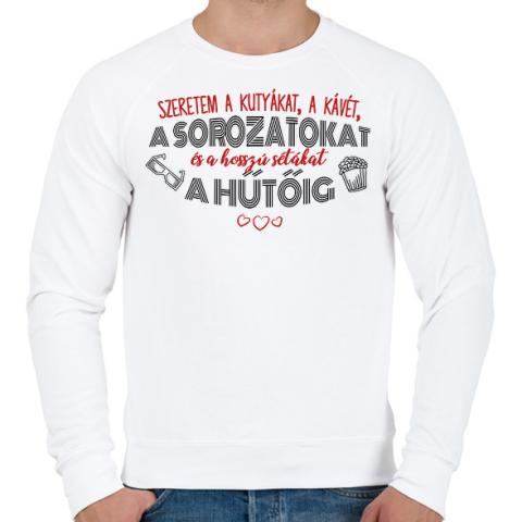 1 kép PRINTFASHION Szeretem a sorozatokat - Férfi pulóver - Fehér