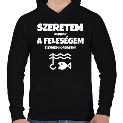 1 kép PRINTFASHION Szeretem, amikor a feleségem elenged horgászni - Férfi kapucnis pulóver - Fekete