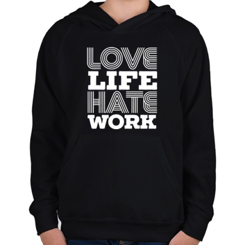 1 kép PRINTFASHION Szeretem az életem, utálom a munkám - Gyerek kapucnis pulóver - Fekete