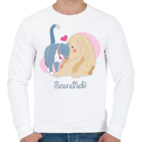 1 kép PRINTFASHION Szeretlek - cica és kutya - Férfi pulóver - Fehér