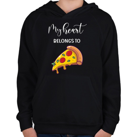 1 kép PRINTFASHION Szeretlek Pizza - Gyerek kapucnis pulóver - Fekete