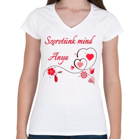 1 kép PRINTFASHION Szeretünk mind anya - Női V-nyakú póló - Fehér