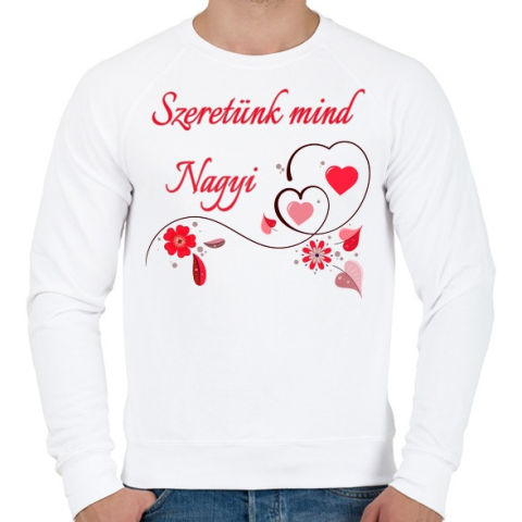 1 kép PRINTFASHION Szeretünk mind Nagyi - Férfi pulóver - Fehér