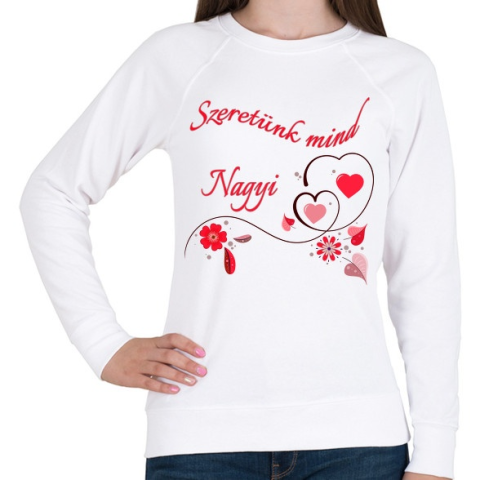 1 kép PRINTFASHION Szeretünk mind Nagyi - Női pulóver - Fehér