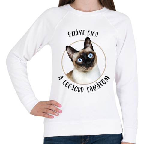 1 kép PRINTFASHION Sziámi cica - Legjobb barát - Női pulóver - Fehér