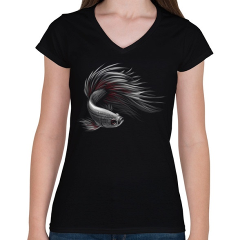 1 kép PRINTFASHION Sziámi harcoshal portré - Női V-nyakú póló - Fekete