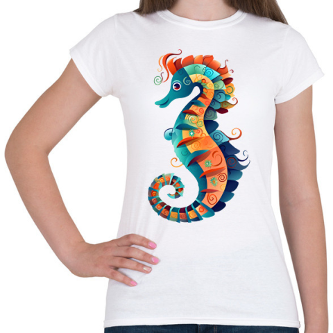1 kép PRINTFASHION Színes csikóhal - Női póló - Fehér