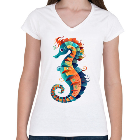 1 kép PRINTFASHION Színes csikóhal - Női V-nyakú póló - Fehér