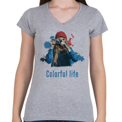 1 kép PRINTFASHION színes élet - Női V-nyakú póló - Sport szürke