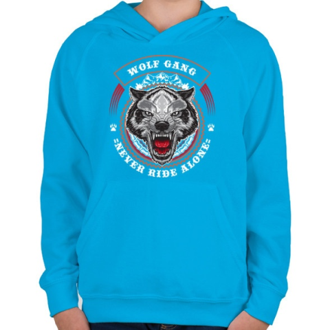 1 kép PRINTFASHION Színes farkascsapat - Gyerek kapucnis pulóver - Azúrkék