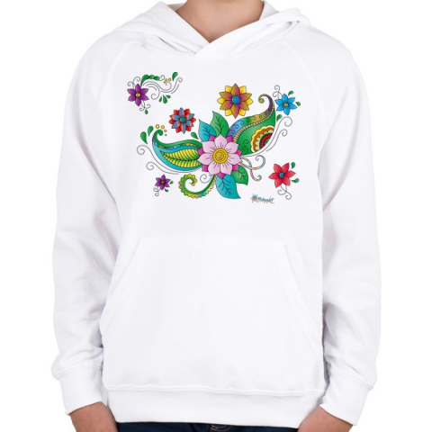 1 kép PRINTFASHION Színes hennaminta - Gyerek kapucnis pulóver - Fehér