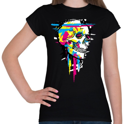 1 kép PRINTFASHION Színes koponya - Női póló - Fekete