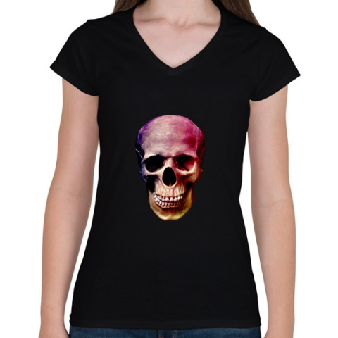 1 kép PRINTFASHION színes koponya - Női V-nyakú póló - Fekete