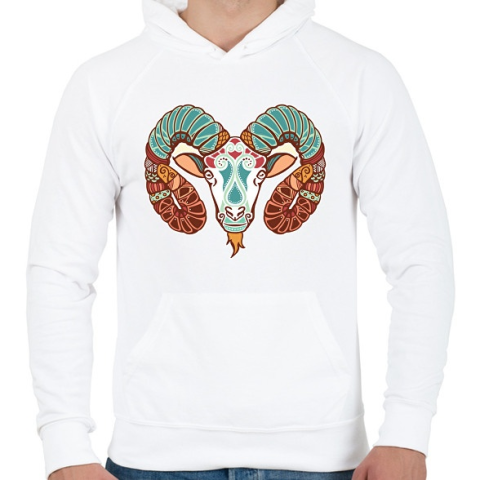 1 kép PRINTFASHION Színes Kos horoszkóp - Férfi kapucnis pulóver - Fehér