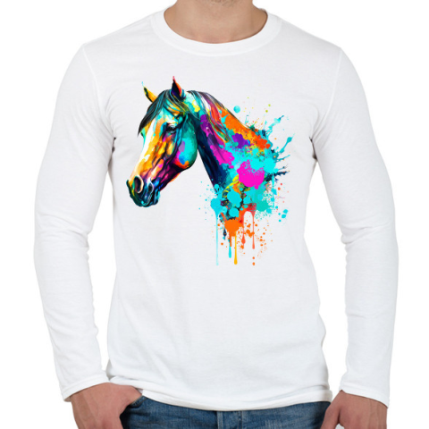 1 kép PRINTFASHION Színes ló - Férfi hosszú ujjú póló - Fehér