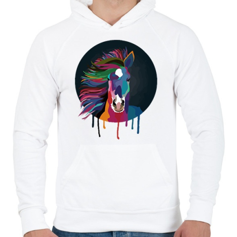 1 kép PRINTFASHION Színes Ló - Férfi kapucnis pulóver - Fehér