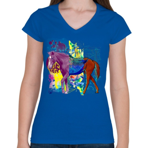 1 kép PRINTFASHION Színes paripa - Női V-nyakú póló - Királykék