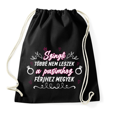 1 kép PRINTFASHION Szingli többé nem leszek - Sportzsák, Tornazsák - Fekete