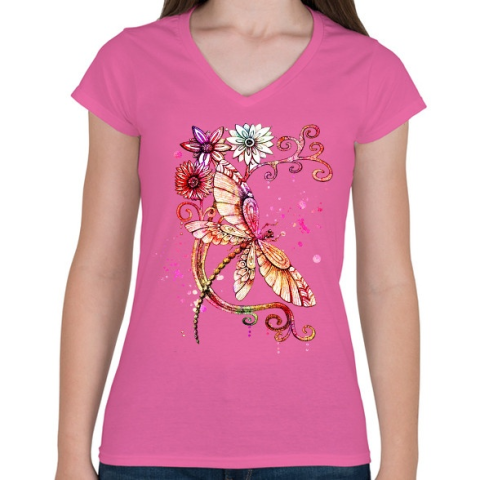 1 kép PRINTFASHION szitakötö 2 - Női V-nyakú póló - Rózsaszín