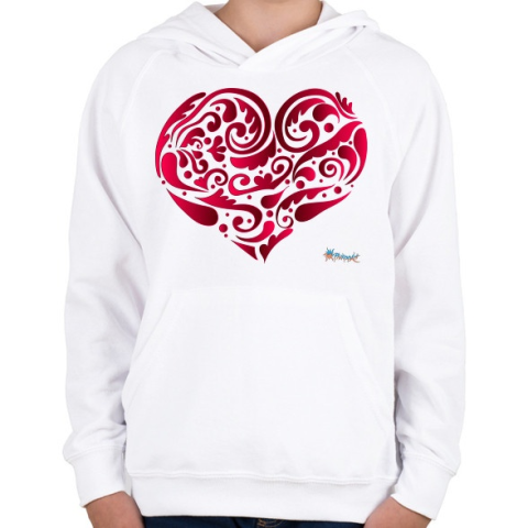 1 kép PRINTFASHION Szív - Gyerek kapucnis pulóver - Fehér
