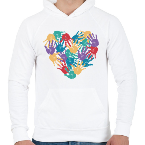 1 kép PRINTFASHION Szív kezekből - Férfi kapucnis pulóver - Fehér