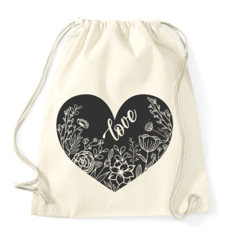 1 kép PRINTFASHION Szív virágokkal - Sportzsák, Tornazsák - Natúr