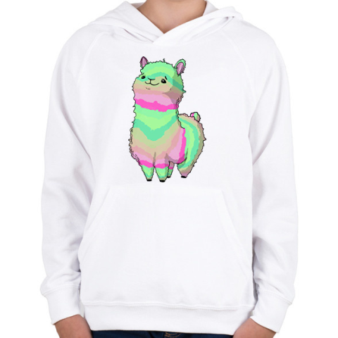 1 kép PRINTFASHION Szivárvány alpaca - Gyerek kapucnis pulóver - Fehér