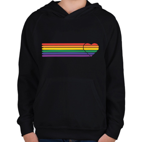 1 kép PRINTFASHION Szivárvány szív - Gyerek kapucnis pulóver - Fekete