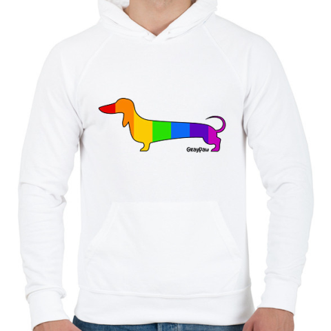 1 kép PRINTFASHION Szivárvány testű tacskó - Férfi kapucnis pulóver - Fehér