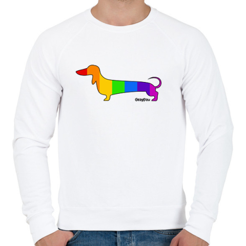 1 kép PRINTFASHION Szivárvány testű tacskó - Férfi pulóver - Fehér