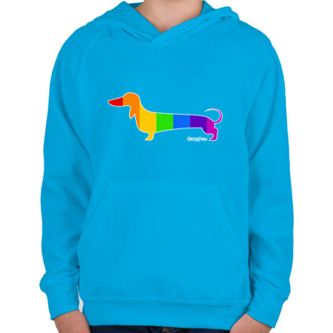 1 kép PRINTFASHION Szivárvány testű tacskó - Gyerek kapucnis pulóver - Azúrkék
