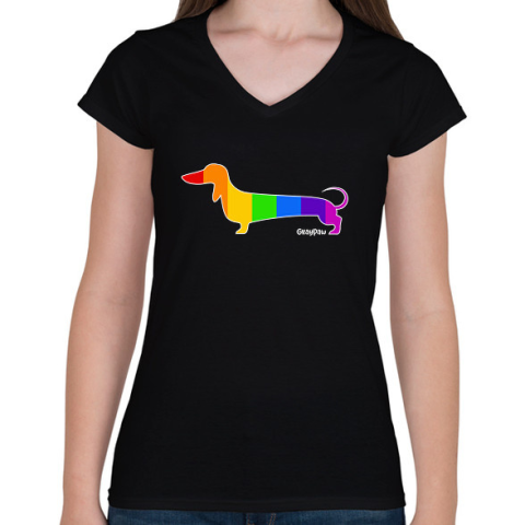 1 kép PRINTFASHION Szivárvány testű tacskó - Női V-nyakú póló - Fekete