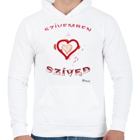 1 kép PRINTFASHION Szivben sziv - Férfi kapucnis pulóver - Fehér