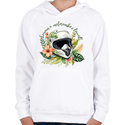 1 kép PRINTFASHION Szívem a motoromhoz láncolt - Gyerek kapucnis pulóver - Fehér