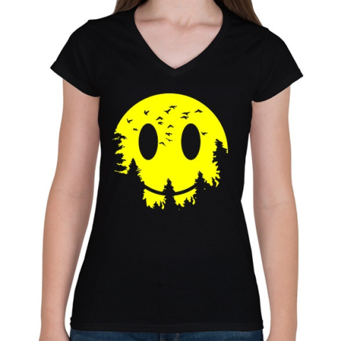 1 kép PRINTFASHION Szmájli hold - Női V-nyakú póló - Fekete