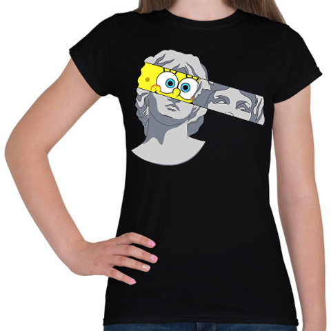 1 kép PRINTFASHION Szobor spongyabob - Női póló - Fekete