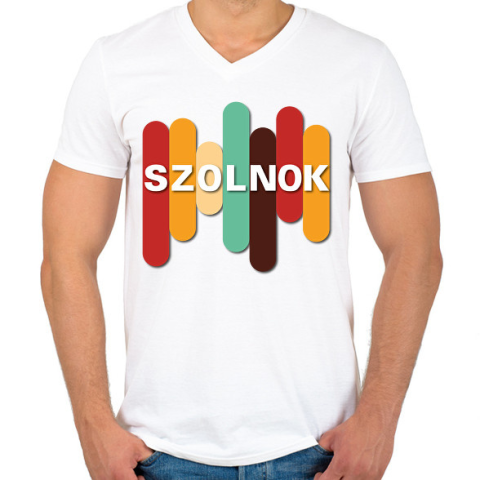 1 kép PRINTFASHION Szolnok - Színes - Férfi V-nyakú póló - Fehér