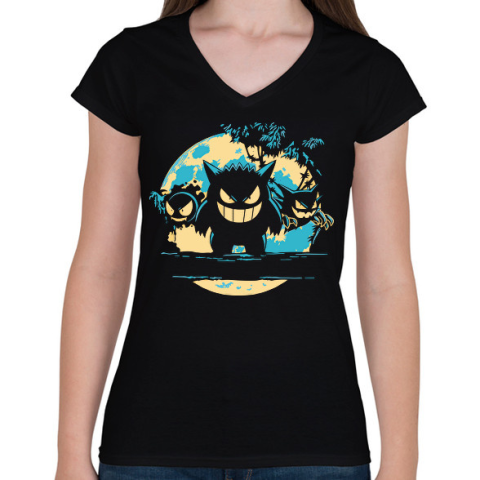 1 kép PRINTFASHION Szörnyecskék sötét alaphoz - Női V-nyakú póló - Fekete
