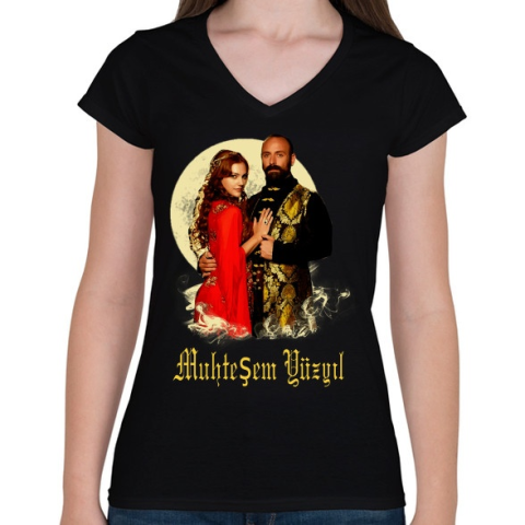 1 kép PRINTFASHION Szulejmán - Női V-nyakú póló - Fekete