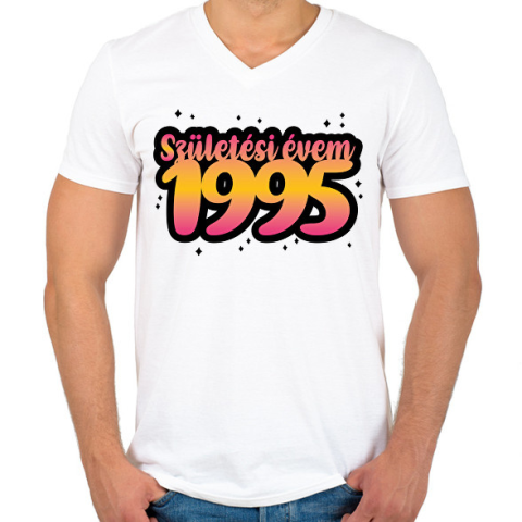 1 kép PRINTFASHION Születésem éve - Évszámmal - Férfi V-nyakú póló - Fehér