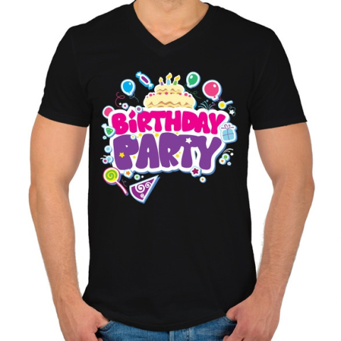 1 kép PRINTFASHION Szülinapi party - Férfi V-nyakú póló - Fekete