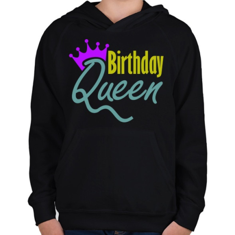 1 kép PRINTFASHION Szülinapos királynő - Gyerek kapucnis pulóver - Fekete