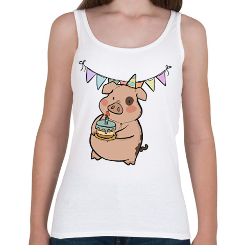 1 kép PRINTFASHION Szülinapos malac - Női atléta - Fehér
