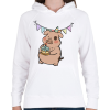 1 kép PRINTFASHION Szülinapos malac - Női kapucnis pulóver - Fehér