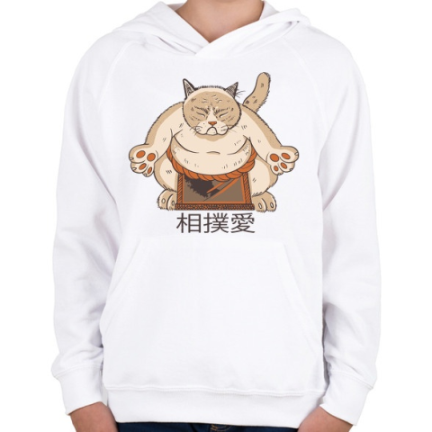 1 kép PRINTFASHION Szumós macska - Gyerek kapucnis pulóver - Fehér