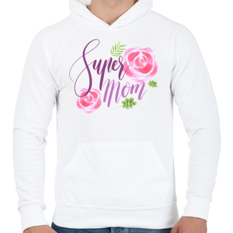 1 kép PRINTFASHION Szuper Anya - Férfi kapucnis pulóver - Fehér
