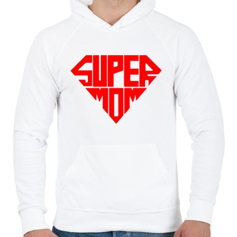1 kép PRINTFASHION Szuper Anya - Férfi kapucnis pulóver - Fehér