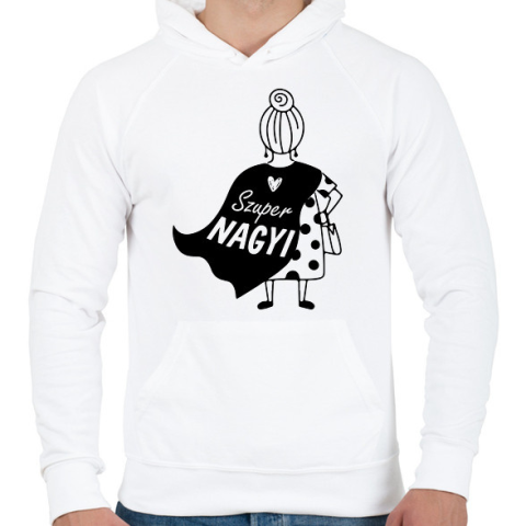 1 kép PRINTFASHION Szuper nagyi - Férfi kapucnis pulóver - Fehér
