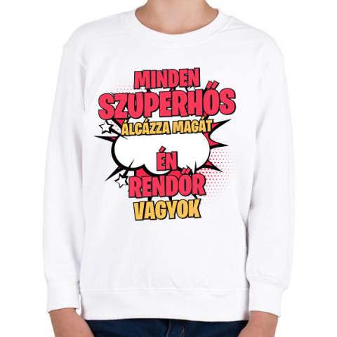 1 kép PRINTFASHION SZUPERHŐS RENDŐR - Gyerek pulóver - Fehér