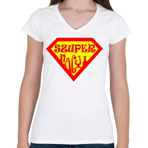 1 kép PRINTFASHION Szupernagyi - Női V-nyakú póló - Fehér